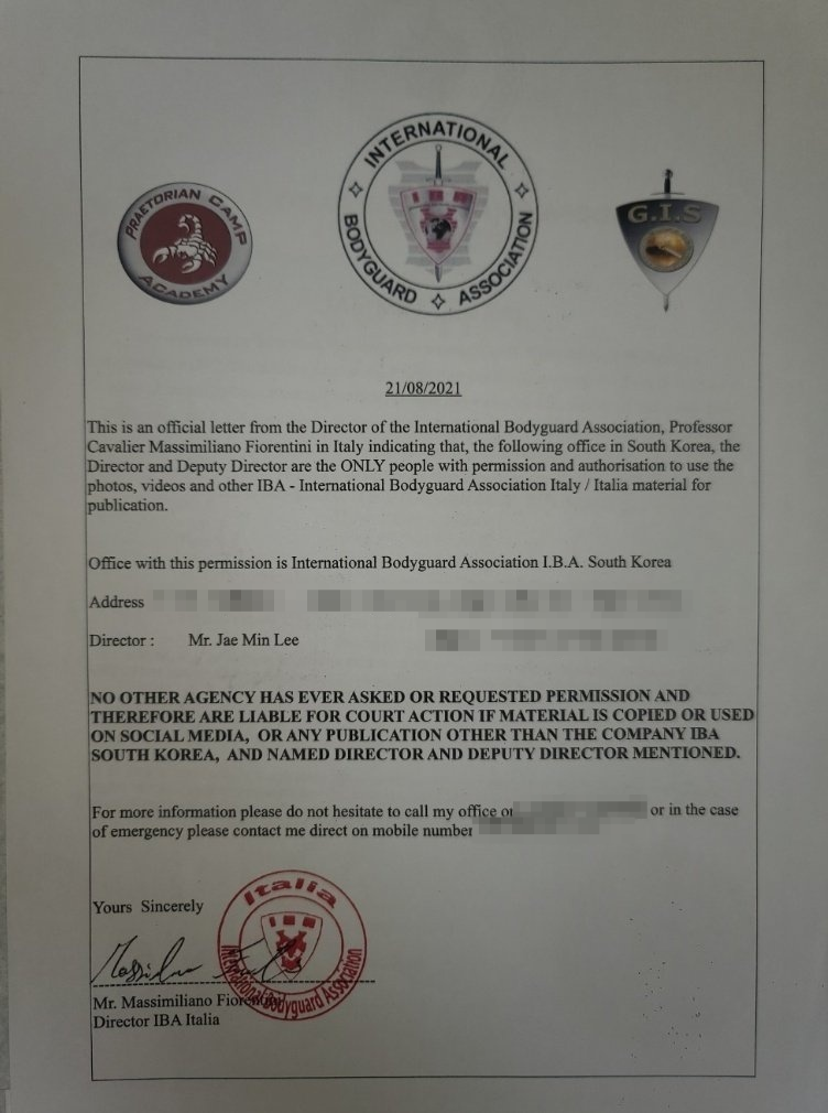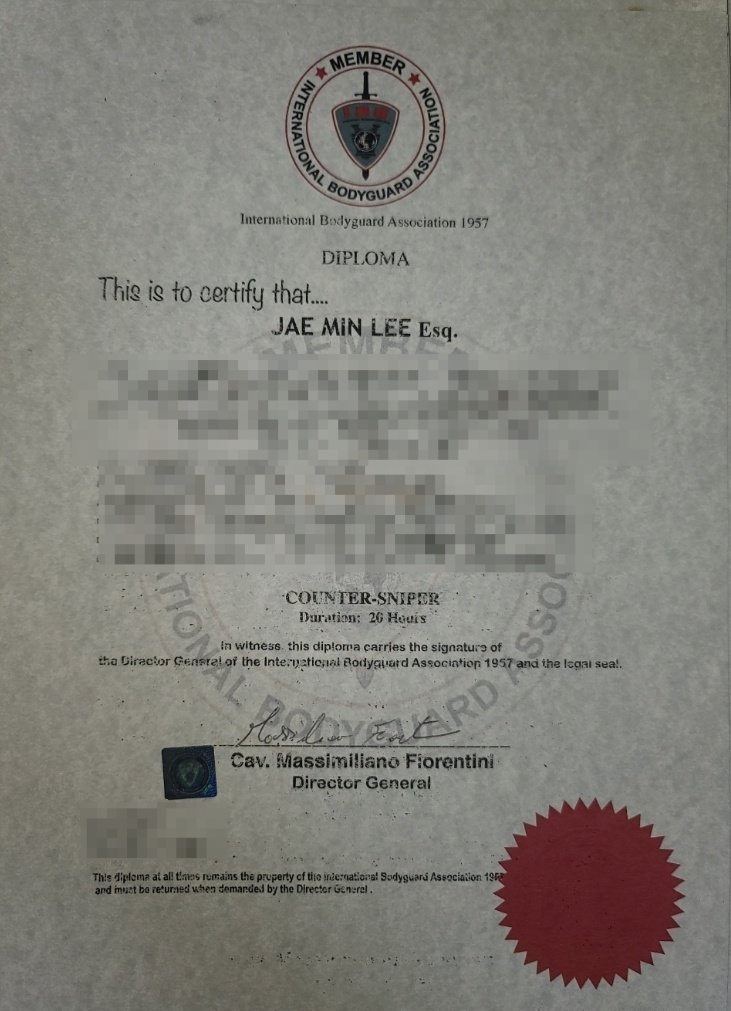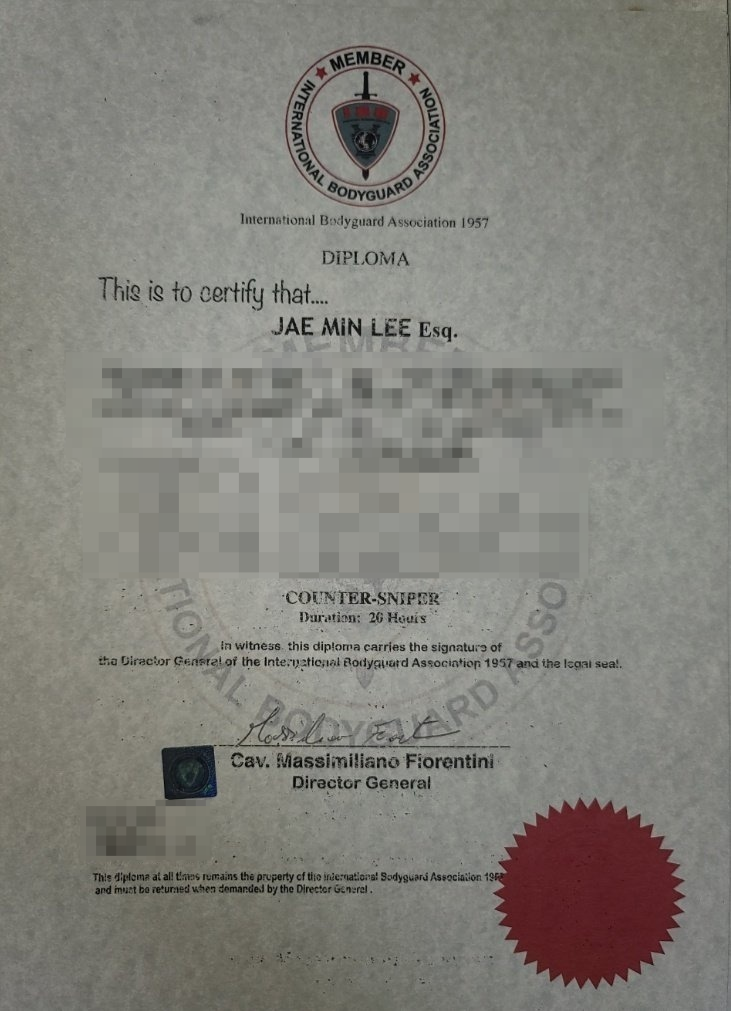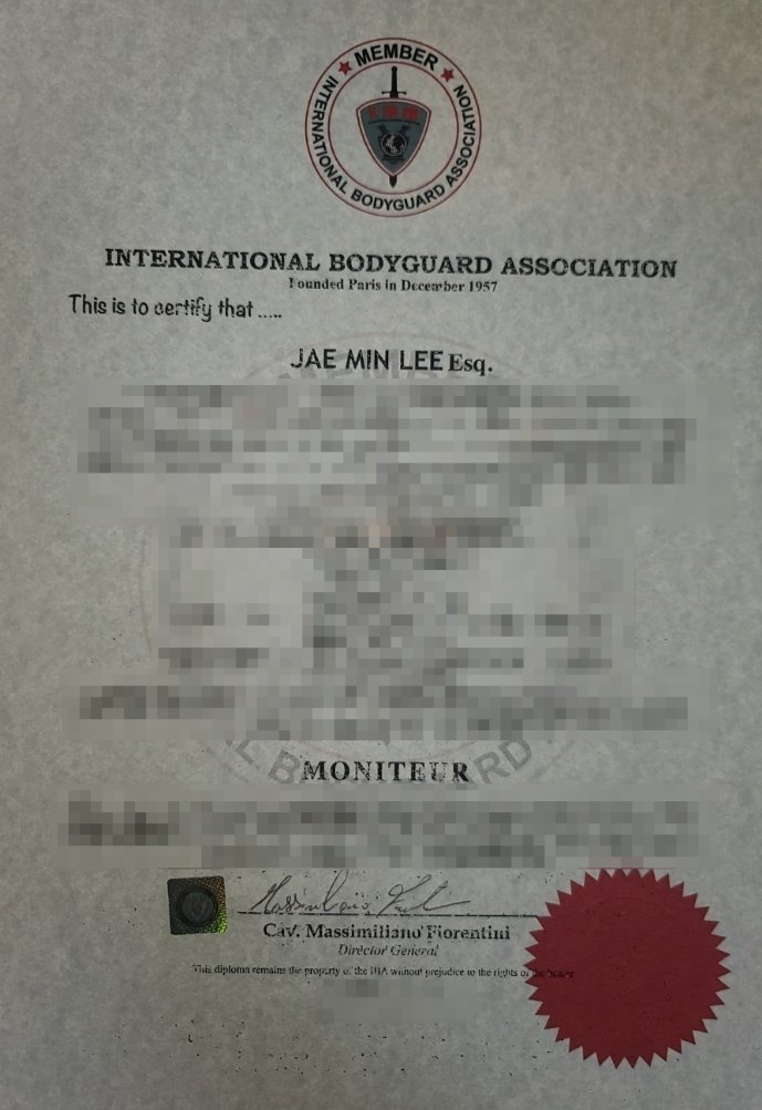 ๋ชจ๋ IBA ๊ฐ์ฌ๋ ์ด์ ์ ๊ฒฝ๋ ฅ, ๋ณต๋ฌด ์ด๋ ฅ, ์ ๋ฌธ์ฑ์ ์์ค๊ณผ ๊ด๊ณ์์ด ๊ตญ์ ๊ณต์ธ๋ณด๋๊ฐ๋(Certified International Bodyguard, CIBG) ๊ณผ์ ์ ๋ฐ๋์ ์ด์ํด์ผ ํ๋ค. ํด๋น ์๊ฒฉ์ ์ทจ๋ํ ํ์๋ง MONITEUR(๊ฐ์ฌ ์ ๋ฌธ ๋จ๊ณ) ๊ณผ์ ์ ์ง์ํ ์ ์๋ค.